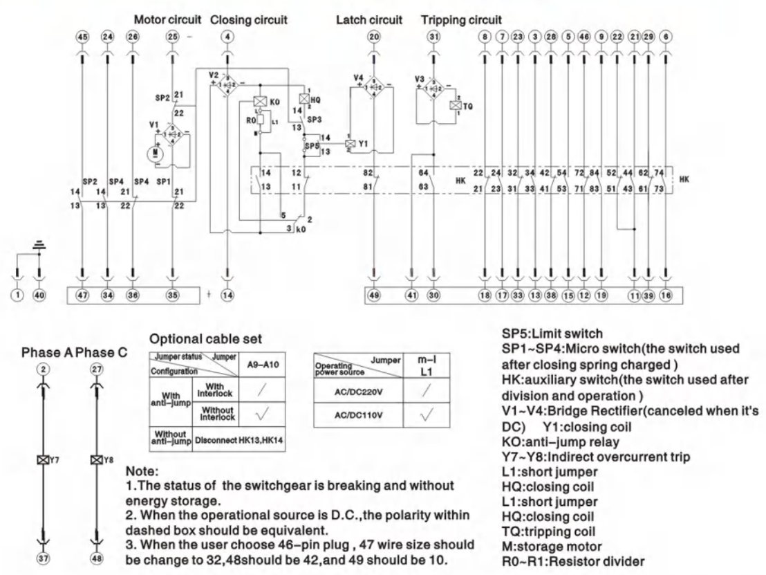 VS1/R-12 অভ্যন্তরীণ ভ্যাকুয়াম সার্কিট ব্রেকার লেটারাল অপারেটিং মেকানিজম সহ পাশ্বর্ীয় অপারেটিং মেকানিজম শক্তি সঞ্চয় করার জন্য বসন্ত ব্যবহার করে। অপারেটিং মেকানিজম দুটি উপায়ে পরিচালিত হতে পারে: ম্যানুয়াল এবং ইলেক্ট্রোমোটিভ অপারেশন দ্বারা। বৈশিষ্ট্যগুলি হল GB 1984-2003 হাই ভোল্টেজ এসি সার্কিট ব্রেকার, JB 3855-1996 3.6-4.5KV ইনডোর এসি হাই ভোল্টেজ সার্কিট ব্রেকার এবং আইসিকিউ স্ট্যান্ডার্ড 62271-100:2001 উচ্চ ভোল্টেজ এসি সার্কিট ব্রেকার।