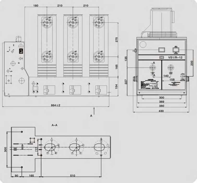 VS1/R-12 পার্শ্বীয় অপারেটিং মেকানিজম সহ ইনডোর ভ্যাকুয়াম সার্কিট ব্রেকার